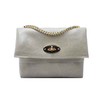 Una borsa raffinata, dotata di una tracolla in catena dorata. Può essere portata come elegante pochette da giorno ma si adatta perfettamente anche alla sera. Interno in pelle. Accessori in oro.