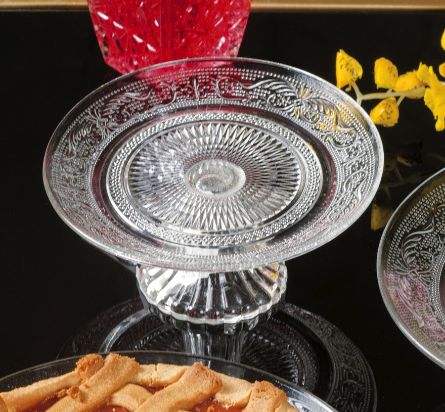 Un’elegante alzata in vetro trasparente dal diametro di 18 cm e altezza di 7 cm, ideale per presentare dolci, torte, frutta o altre pietanze in modo raffinato. La superficie liscia e lucida valorizza qualsiasi preparazione, rendendola perfetta sia per l’uso quotidiano che per occasioni speciali. Il design semplice e versatile si adatta a ogni stile di tavola, unendo funzionalità ed estetica con un tocco di eleganza minimalista.