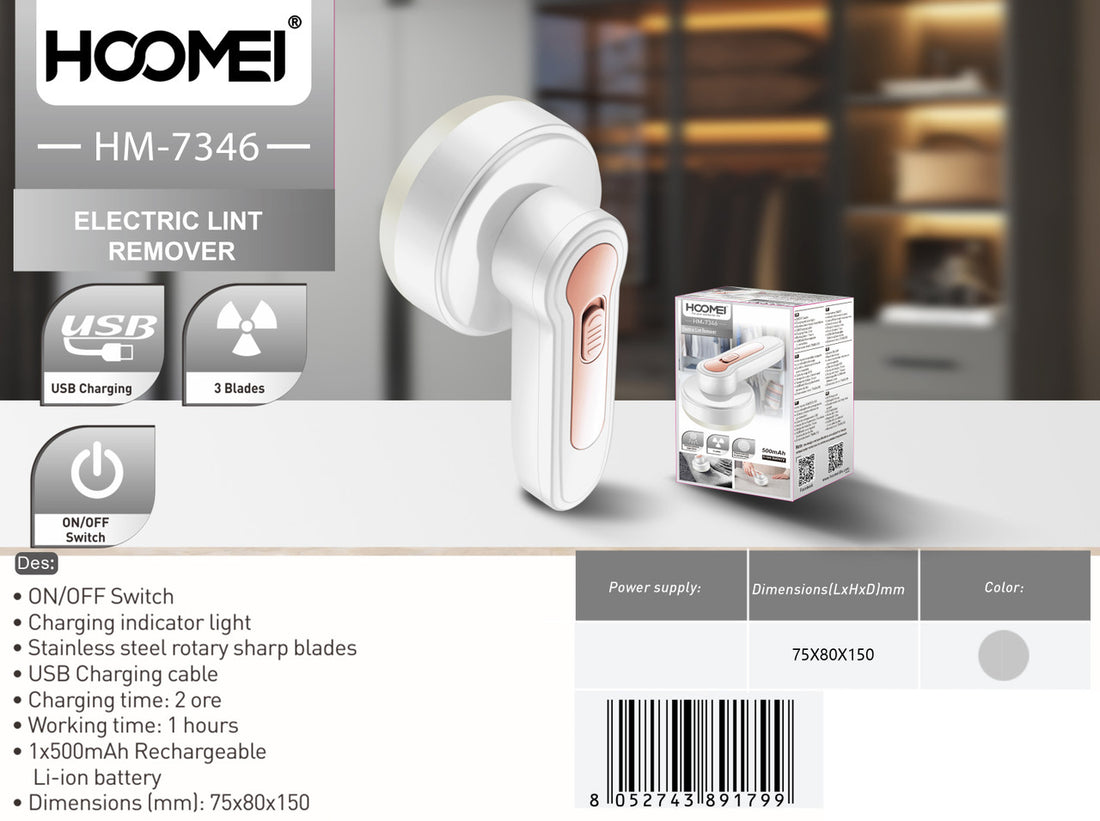 Hoomei - Levapelucchi Ricaricabile 75x80x150 mm