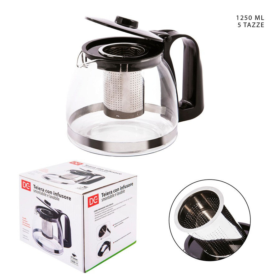 Glass teapot with steel infuser. Ideal for preparing three cups.