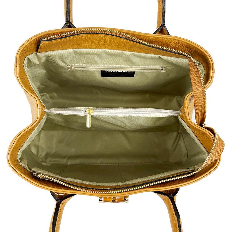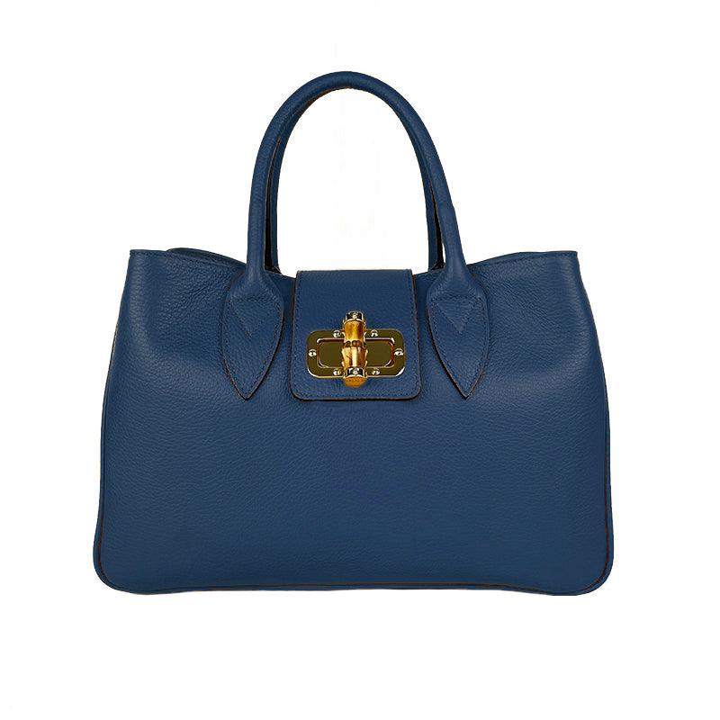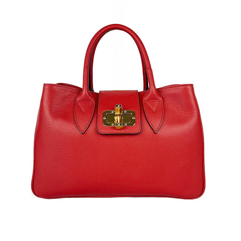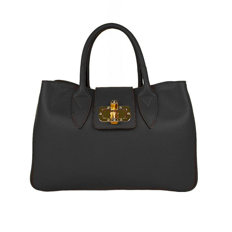 Dafne - Borsa a Mano in Pelle con Chiusura in Bambù