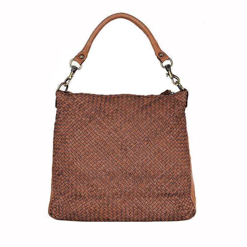 Elvira - Borsa a Spalla in Pelle Vintage Intrecciata