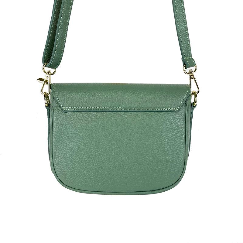 Fantastica borsa a tracolla in vera pelle di ultima tendenza, dotata di tracolla regolabile e removibile, chiusura con clip magnetica e cerniera. All'interno è presente una tasca con cerniera.