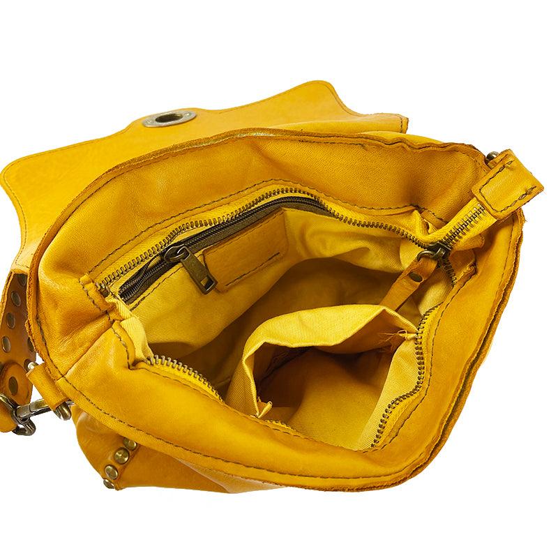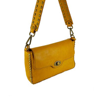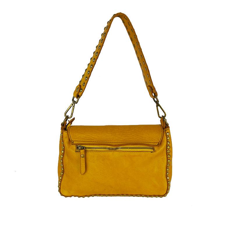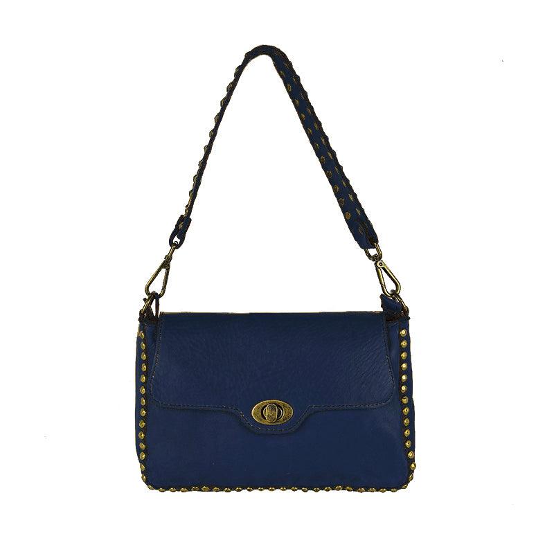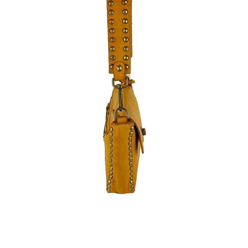 Magnifica borsa a tracolla in pelle lavata effetto vintage. Le borchie ai lati e sulla tracolla la rendono questa borsa ancora più fantastica. Dotata di chiusura a gancio e cerniera. All'interno della borsa sono presenti due tasche di cui una aperta ed una con cerniera. Il retro della borsa presenta una tasca con cerniera. Dotata anche di tracolla lunga in pelle regolabile aggiuntiva. Dettagli in oro invecchiato.