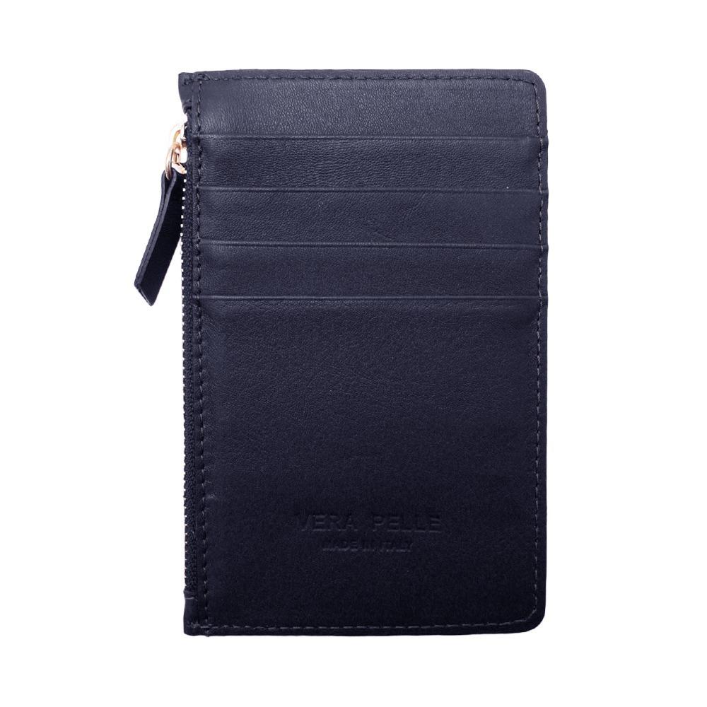 Delizioso portacarte in morbida pelle con quattro ampi spazi per tessere, chiusura con zip dorata, interno in tessuto. Comodissimo da portare nelle mini bag e nelle pochette.