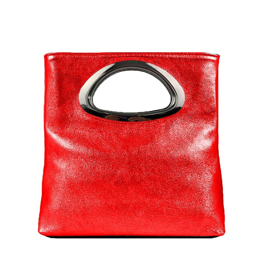 Fantastica borsa a mano in pelle metallizzata Made in Italy dotata di manico e chiusura a cerniera. Indossa questa borsa e rendi il tuo look strepitoso!