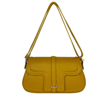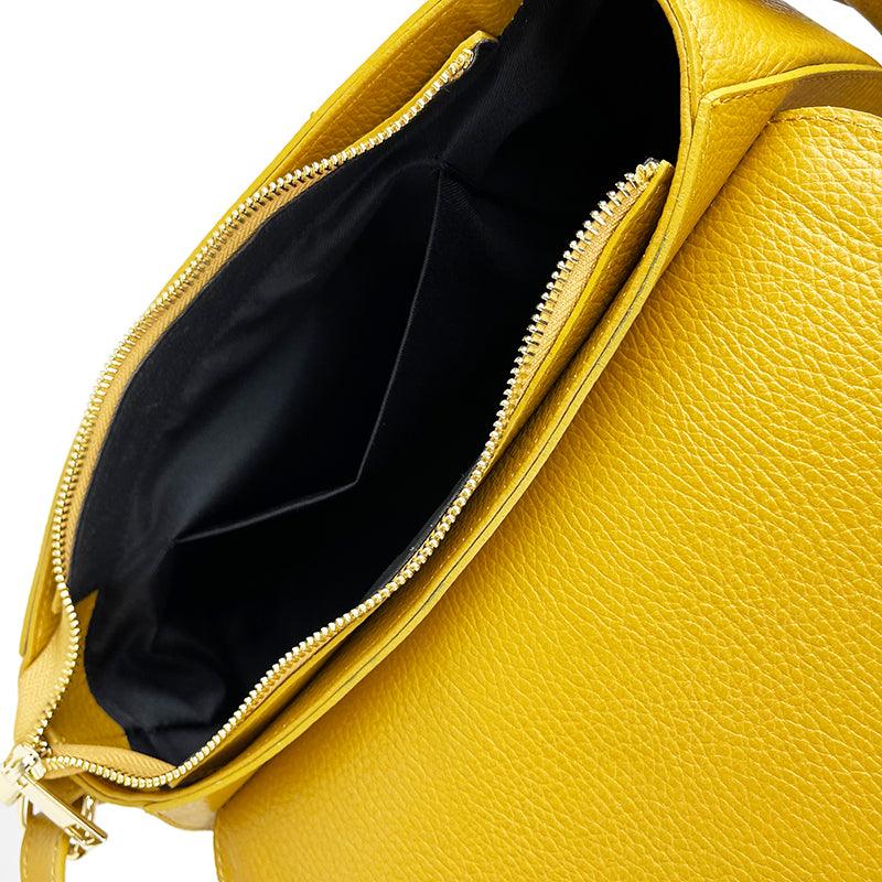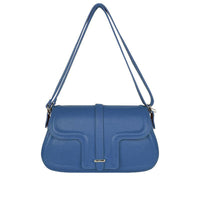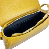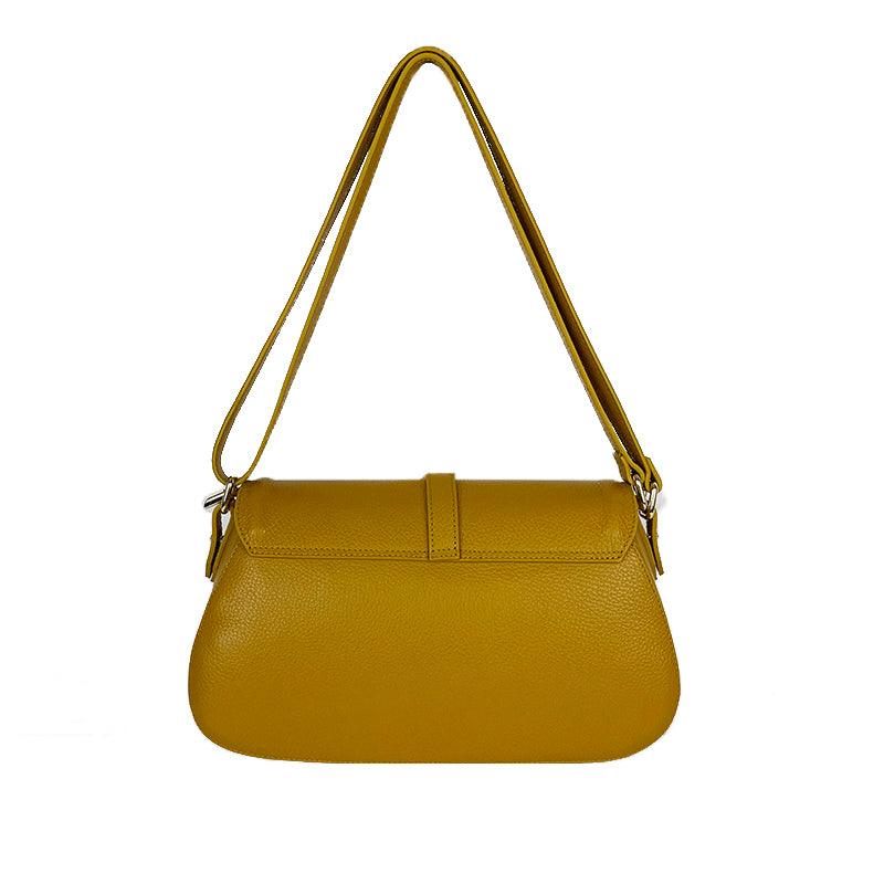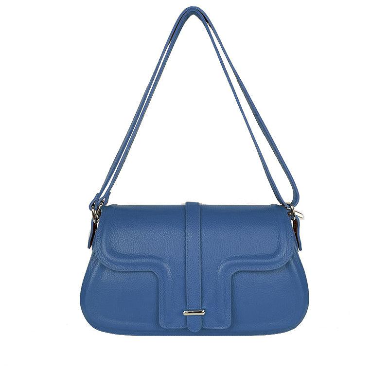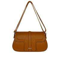 Bellissima borsa a spalla in pelle con tracolla allungabile che la trasforma in una comodissima borsa a tracolla. La patta della borsa è chiusa con un bottone magnetico e l'interno è protetto dalla cerniera. L'interno della borsa è in tessuto contenente una tasca con cerniera ed una tasca aperta.