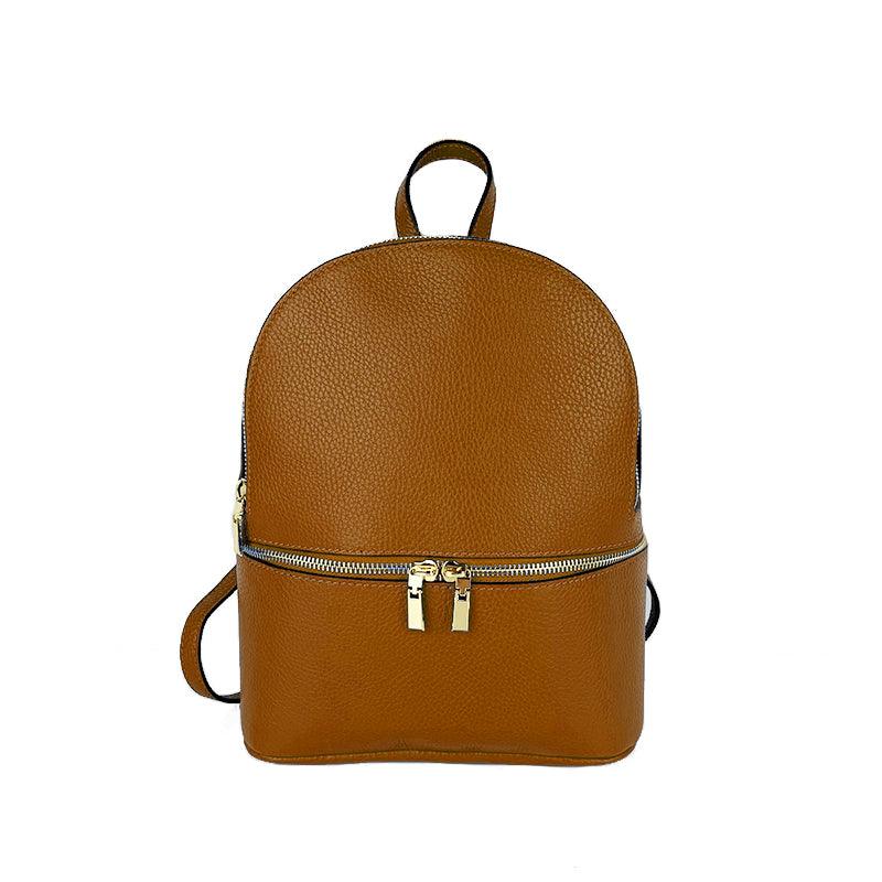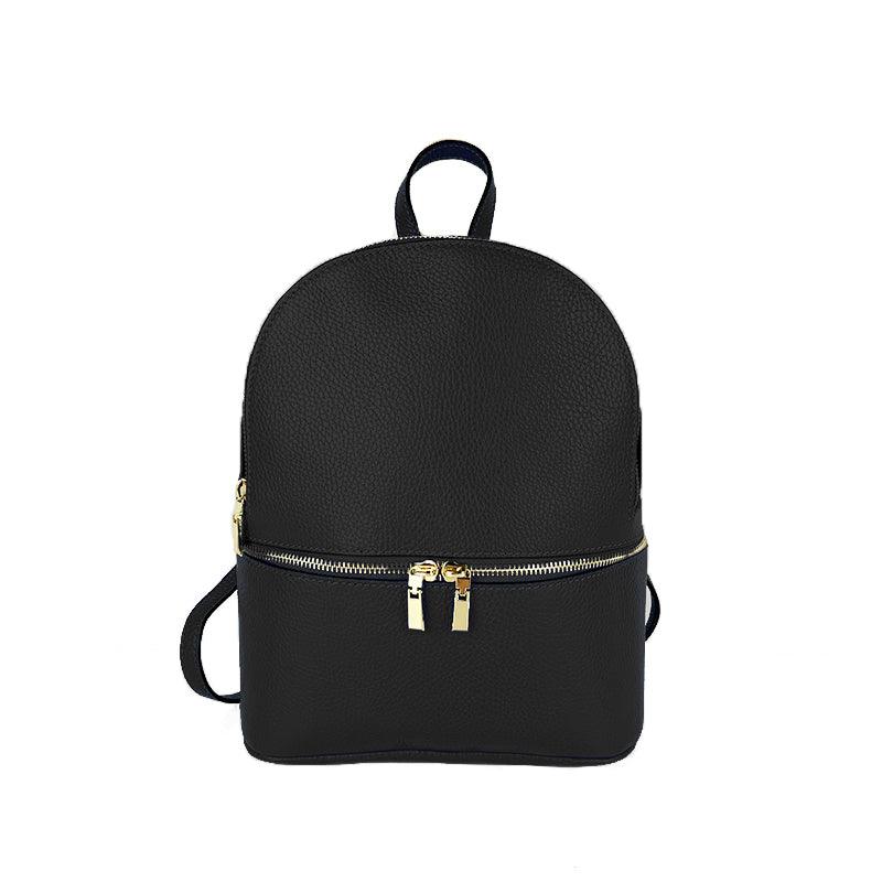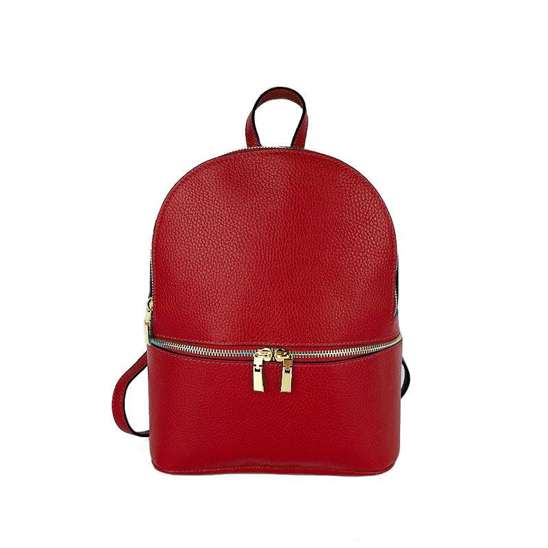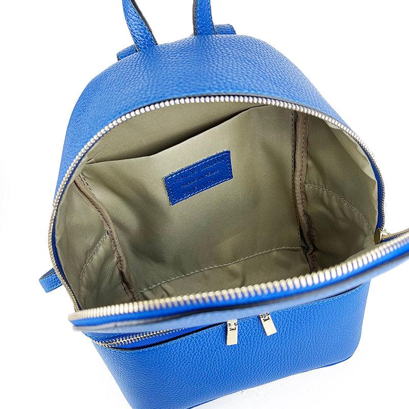 Stupendo zainetto in vera pelle con tasca frontale chiusa da doppia cerniera. Lo zaino è dotato di singolo manico, spallacci regolabili e chiusura con cerniera. L'interno è fatto in tessuto ed ha una tasca porta oggetti.