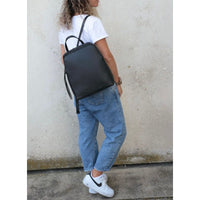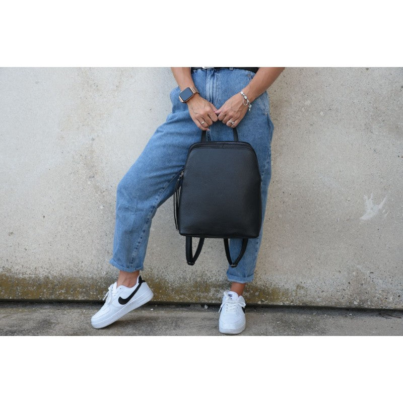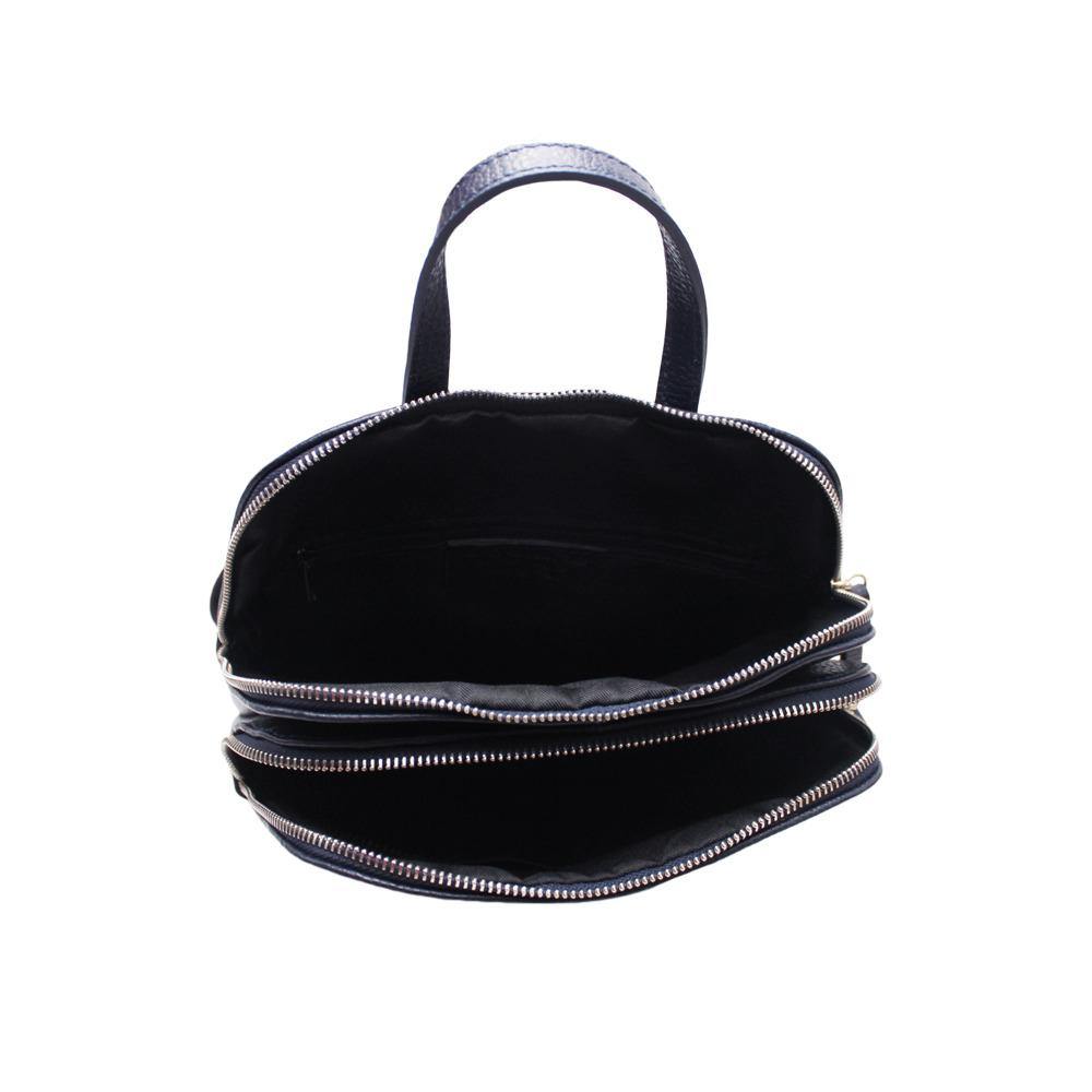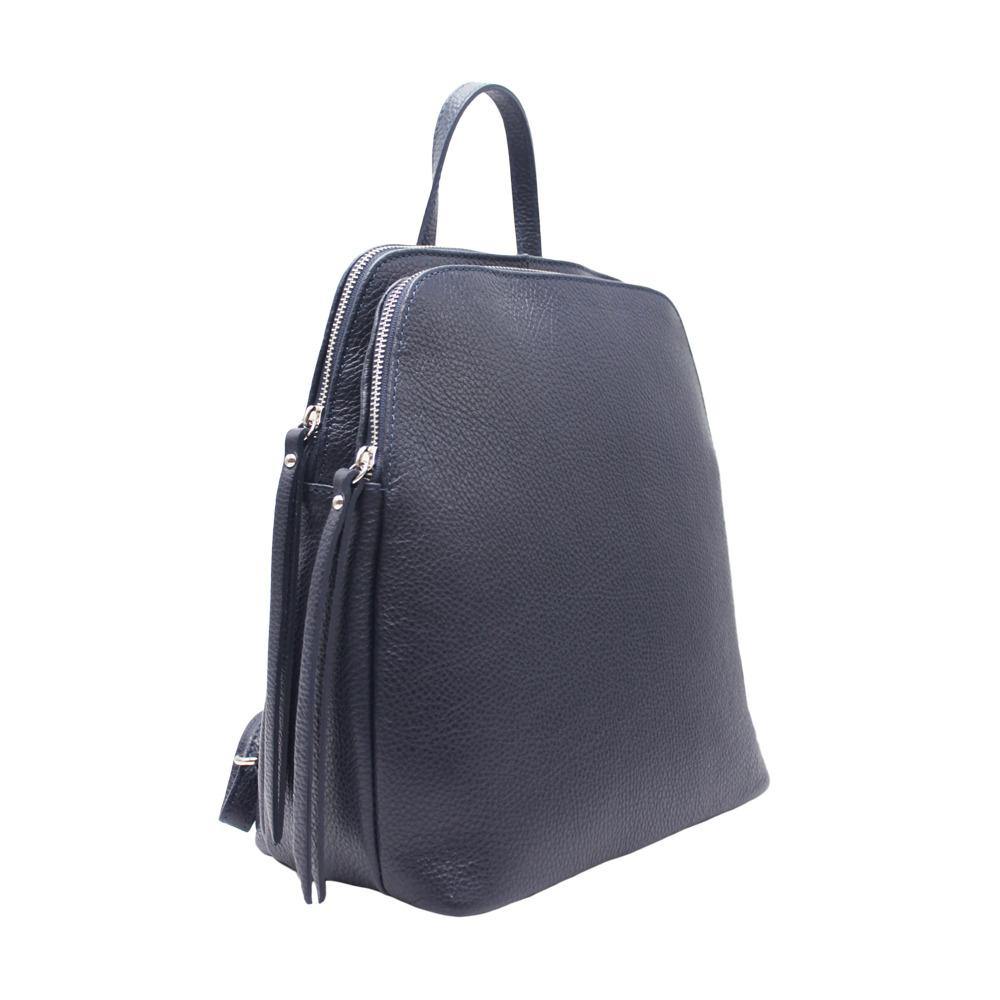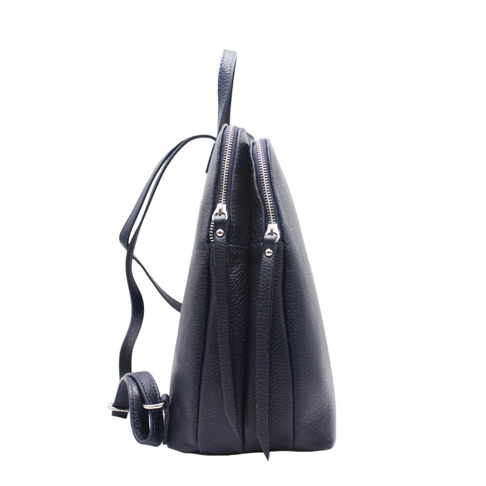 Elegantissimo zaino in pelle unisex dalla linea semplice e pulita, presenta due ampi scomparti chiusi da zip, interno foderato e dotato di una tasca porta oggetti chiusa da zip. Sulla parte posteriore troviamo una tasca con chiusura lampo, i particolari sono in metallo argentato e le tracolle regolabili.
