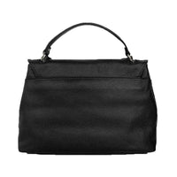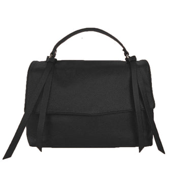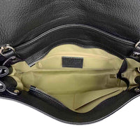 Borsa in pelle a mano con patta e frange, manico singolo, chiusura a cerniera e tracolla lunga regolabile. All'interno sono presenti due tasche di cui una con cerniera e l'altra tasca portacellulare.