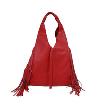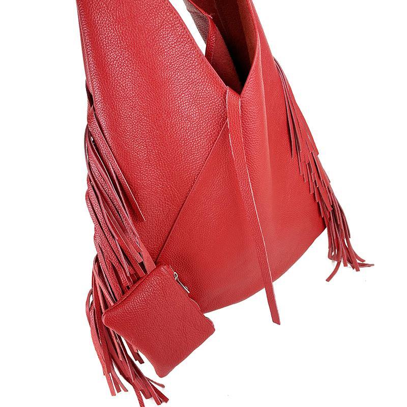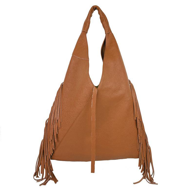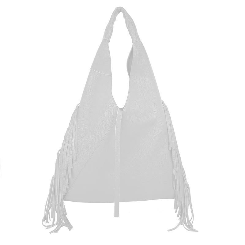 Comodissima e stupenda borsa sacca in vera pelle con frange laterali dotata di pochettina interna portachiavi.