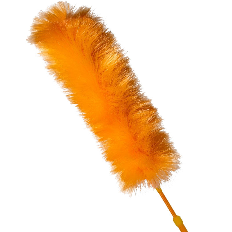 Piumino da spolvero in fibra sintetica con manico allungabile. Anima interna in metallo flessibile per adattare la curvatura del piumino a qualsiasi esigenza. Adatto a tutte le superfici della casa. Disponibile in 3 varianti colore: blu, arancione o grigio.