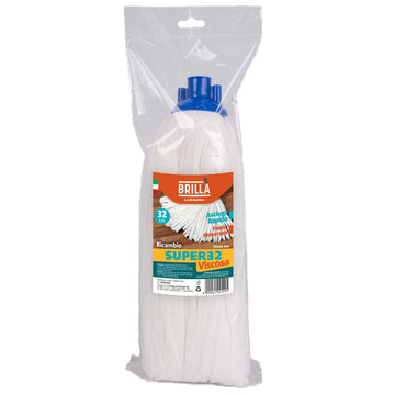 Mop Super 32 è realizzato in viscosa e poliestere. Le fibre lunghe e fitte ad elevato potere assorbente, asciugano rapidamente grazie alla loro leggerezza. Mop di grandi dimensioni adatto ad ampie superfici. Attacco del manico universale. Perfetto per la pulizia di qualsisi pavimento. Non lascia aloni o pelucchi. Non lavare in lavatrice, lavare a mano ad una temperatura massima di 40°C.