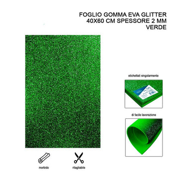 Foglio Gomma Eva Glitter 40X60Cm 2Mm Verde