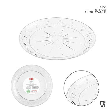 Dc Piatto Tondo Riutilizzabile 18Cm 6Pz Trasp