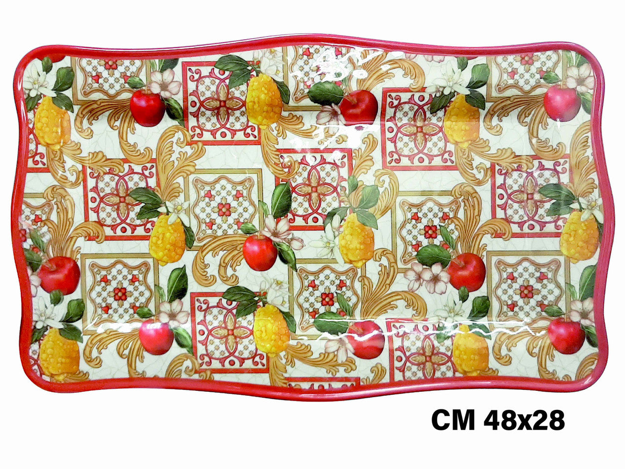 Ibct - Vassoio Rettangolare Melamina . Dec.Maiolica 48x28 cm