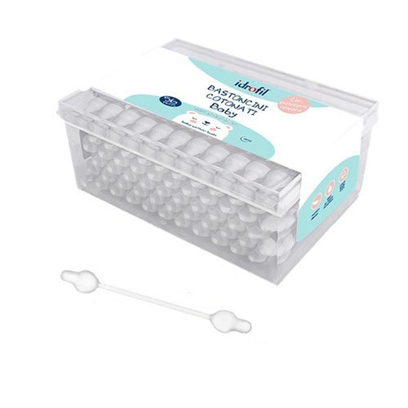 I bastoncini cotonati Baby Idrofil sono progettati per la cura delicata dei neonati e dei bambini,  è pensata per la sicurezza e l’igiene quotidiana del tuo bambino.Il bastoncino è realizzato in carta biodegradabile e la punta ingrossata è di 100% cotone idrofilo cardato di altissima qualità.Disponibili nella pratica confezione da 56 bastoncini cotonati.