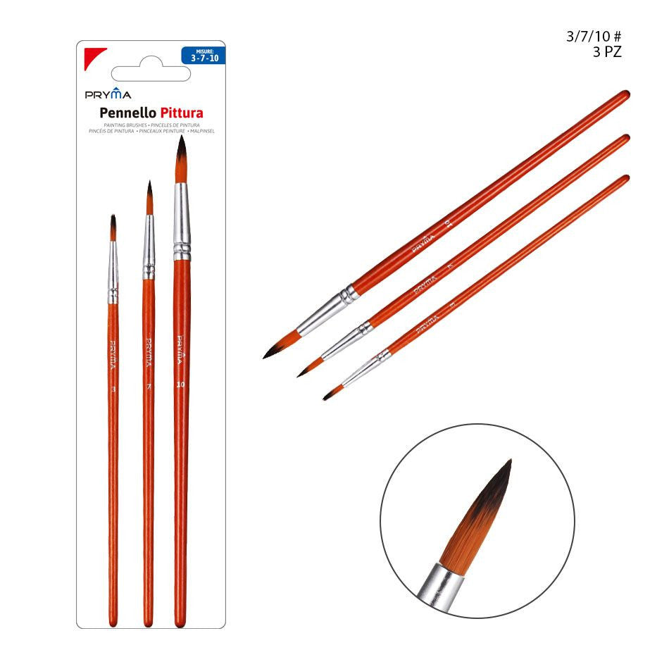 Pryma - Pennello Pittura Punta Tonda N.3-7-10 3Pz Bl.