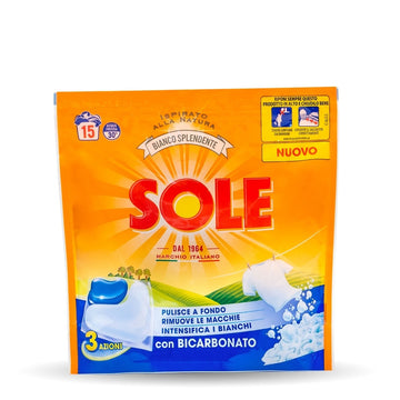Tutta la qualità italiana di Sole ispirata ai rimedi della natura. Sole Bianco Splendente con Bicarbonato di Sodio rimuove le macchie già a basse temperature e rende i tuoi bianchi ancora più splendenti. Scopri Sole Bianco Splendente anche nel formato liquido e nelle comode Caps 3 azioni! ATTENZIONE Sole Bianco Splendente Detersivo in polvere per bucato in lavatrice e a mano. Provoca grave irritazione oculare. Tenere fuori dalla portata dei bambini. Lavare accuratamente le mani dopo l'uso. In caso di consultazione di un medico, tenere a disposizione il contenitore o l'etichetta del prodotto. IN CASO DI CONTATTO CON GLI OCCHI: sciacquare accuratamente per parecchi minuti. Togliere le eventuali lenti a contatto se è agevole farlo. Continuare a sciacquare. Se l'irritazione degli occhi persiste, consultare un medico. IN CASO DI INGESTIONE: in presenza di malessere, contattare il CENTRO ANTIVELENI di Milano (Tel. 02 66101029) o un medico. A.I.S.E www.cleanrigh