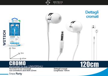 Wetech Auricolari Cromo In-Ear Jack Da 3.5Mm