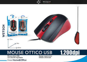 Wetech Mouse Ottico Usb Con Puntatore Led